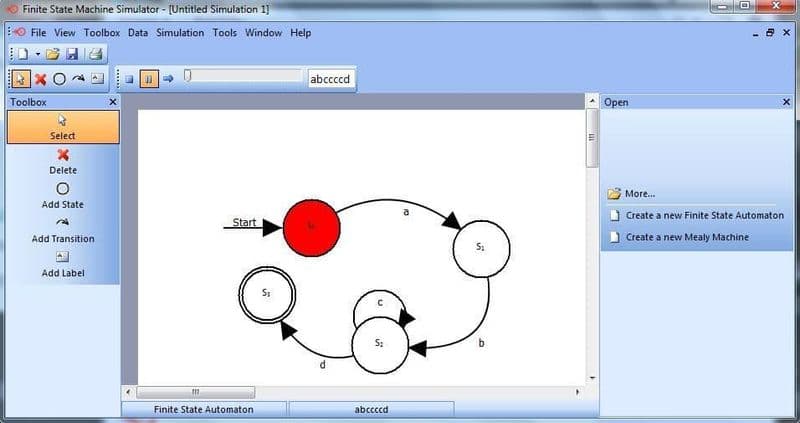 FSMSim is a software tool designed to teach finite state machines - Finite State Automata and Mealy Machines - for A Level Computing/Computer Science. It enables exploration of user-defined finite state machines constructed to recognise valid strings in the regular language expressed in the user-defined finite state machine.